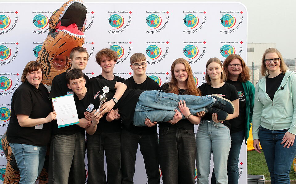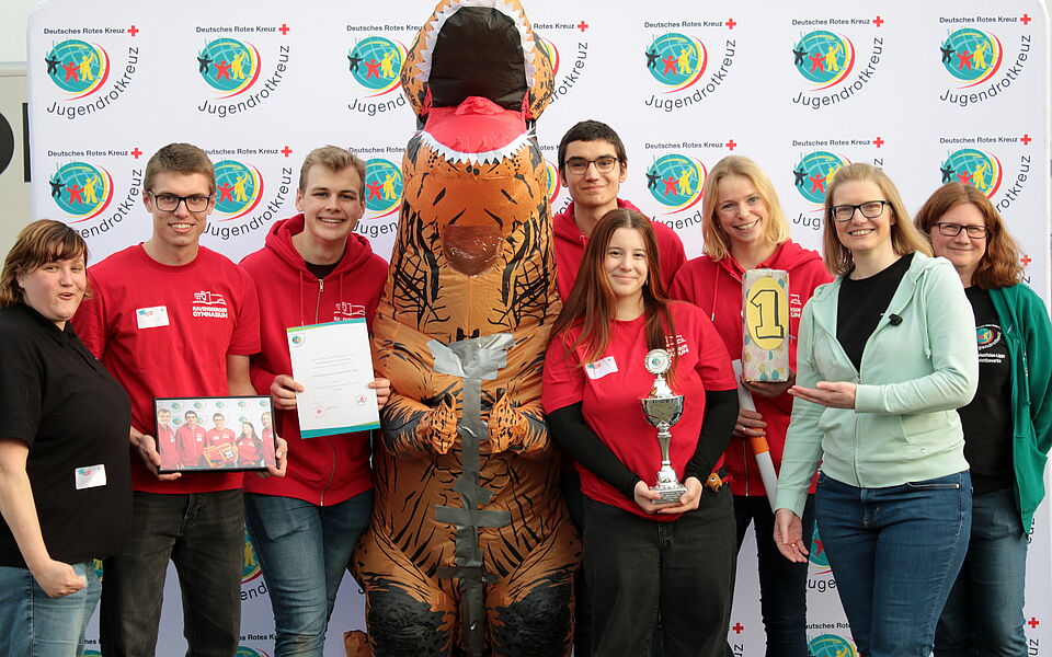 Fünf der zehn zu lösenden Aufgaben deckten das Thema Erste Hilfe ab. Hier konnten die Schulsanis zeigen, was in ihnen steckt. Aufgabe war es unter anderem, Unfallsituationen richtig zu deuten und entsprechende Hilfeleistungen korrekt anzuleiten. Unter dem Motto „Henry und der Rettosaurus-Rex“ wurden die Aufgaben thematisch in eine Parallelwelt versetzt, in der Menschen mit Dinosauriern zusammenleben. Neben den Aufgaben zur Ersten Hilfe waren Teamgeist, Kreativität und Lösungsfindung in den Bereichen Rotkreuzwissen, Musisch-Kulturelles, Sport & Spiel und Soziales gefragt. Die gestellten Aufgaben forderten die SSDler heraus und ließen gleichzeitig Raum für Spaß und Kreativität.